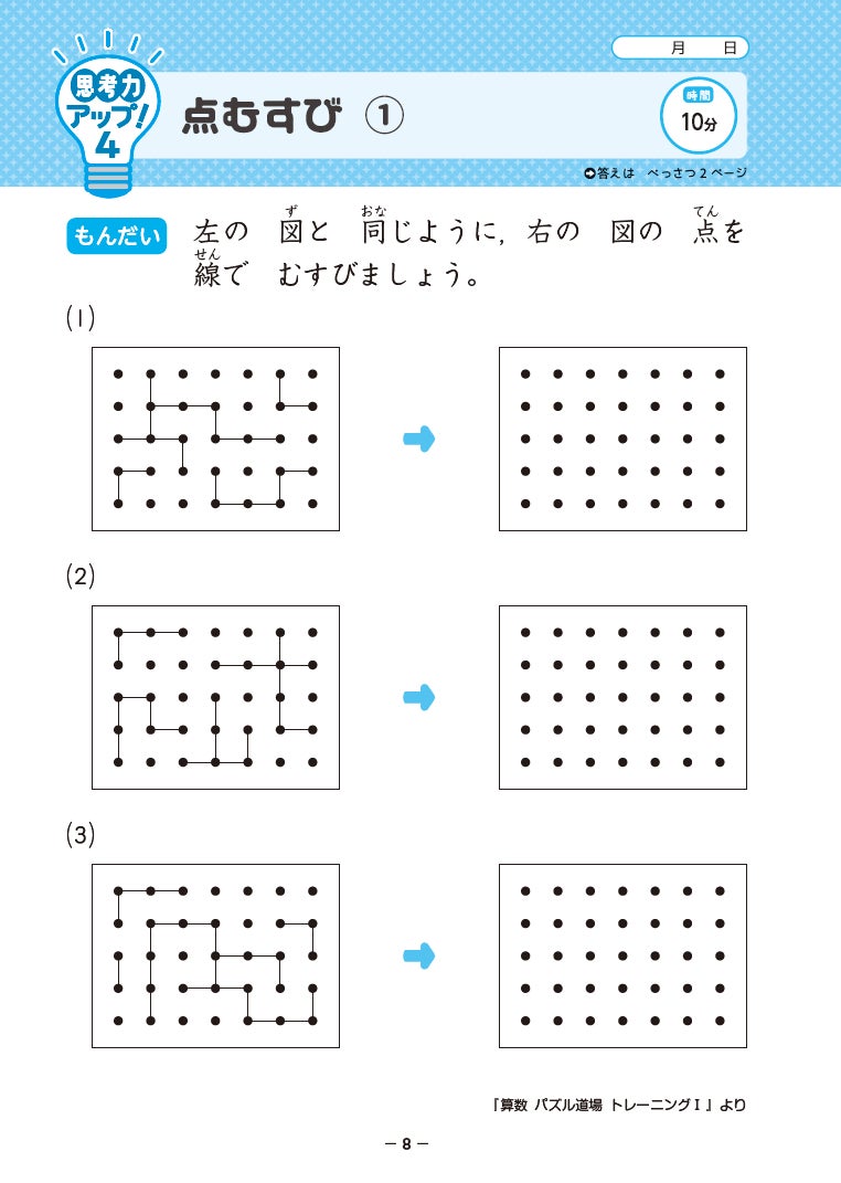 さらに裏面の思考パズル40題で“解決方法を自分で見つける力”を養成