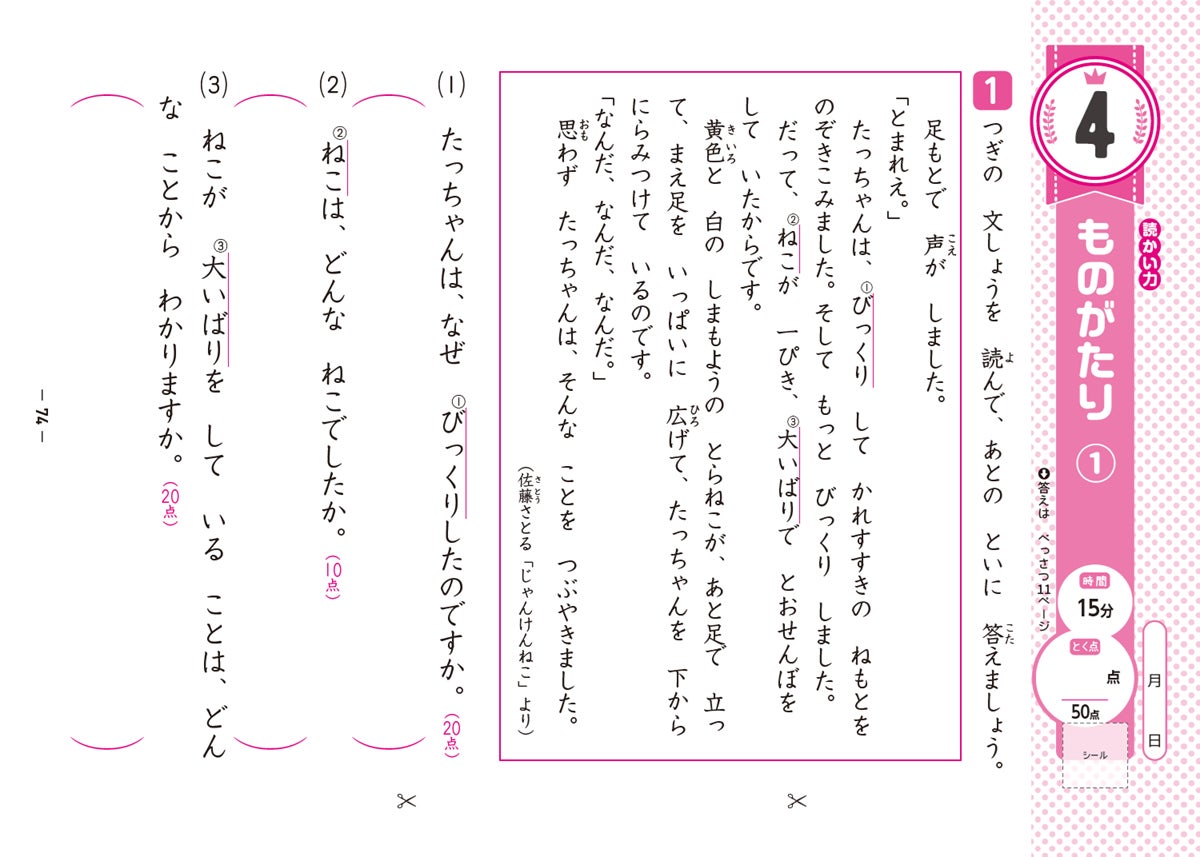 ●表面は国語の読解問題20回と算数の文章題20回で「国語力」と「算数力」を身につけ、