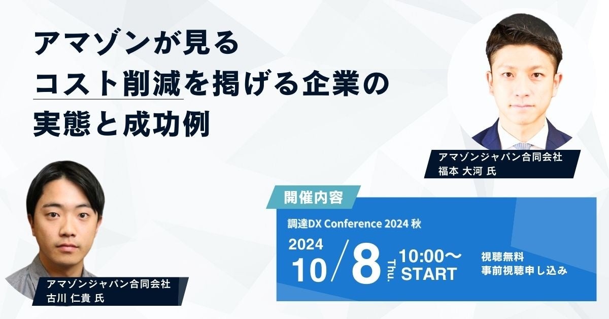 「アマゾンが見る コスト削減を掲げる企業の実態と成功例」日本最大級の調達・購買部門向けのカンファレンス「調達DXカンファレンス2024秋」セッションが決定