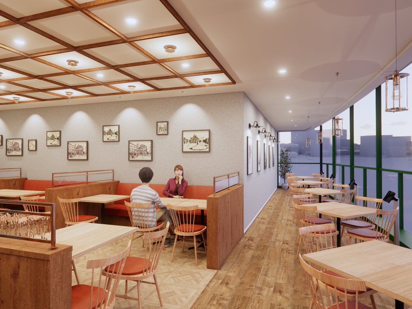 シェフこだわりのオリジナルパスタや、看板商品「ピエトロドレッシング 和風しょうゆ」をはじめ数種類のドレッシングを楽しめるサラダ、素敵なひとときを彩るスイーツメニューなどをご用意いたしました。ガラス張りの窓で眺めが良く、木のぬくもりが心地よい店内で、お食事もカフェタイムもお楽しみいただけます。