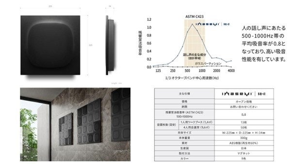 音響メタマテリアル技術を応用しており、高い意匠性と吸音性能を有しております。「重厚感を持たせたい 」「デザインにアクセントを持たせたい」場合に、音環境を改善するとともに意匠性においても理想のオフィス環境を叶えられます。