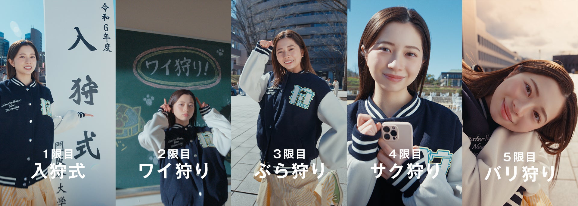 本ドラマは、「大学入ったら、お姉さんから変わった授業を受けることになった」という設定で展開し、謎めいたお姉さんに扮した桜田さんが、新入生に『モンスターハンターNow』の楽しみ方を教えながら、大学での一日を過ごしていく模様を描いています。表情豊かな桜田さんを通して、新生活を始める人へのエールを送るとともに、ゲーム未経験者でもすぐに遊べる『モンスターハンターNow』の手軽さや、仲間や周囲の人たちと一緒にプレイする楽しさなど様々な魅力を伝えていきます。