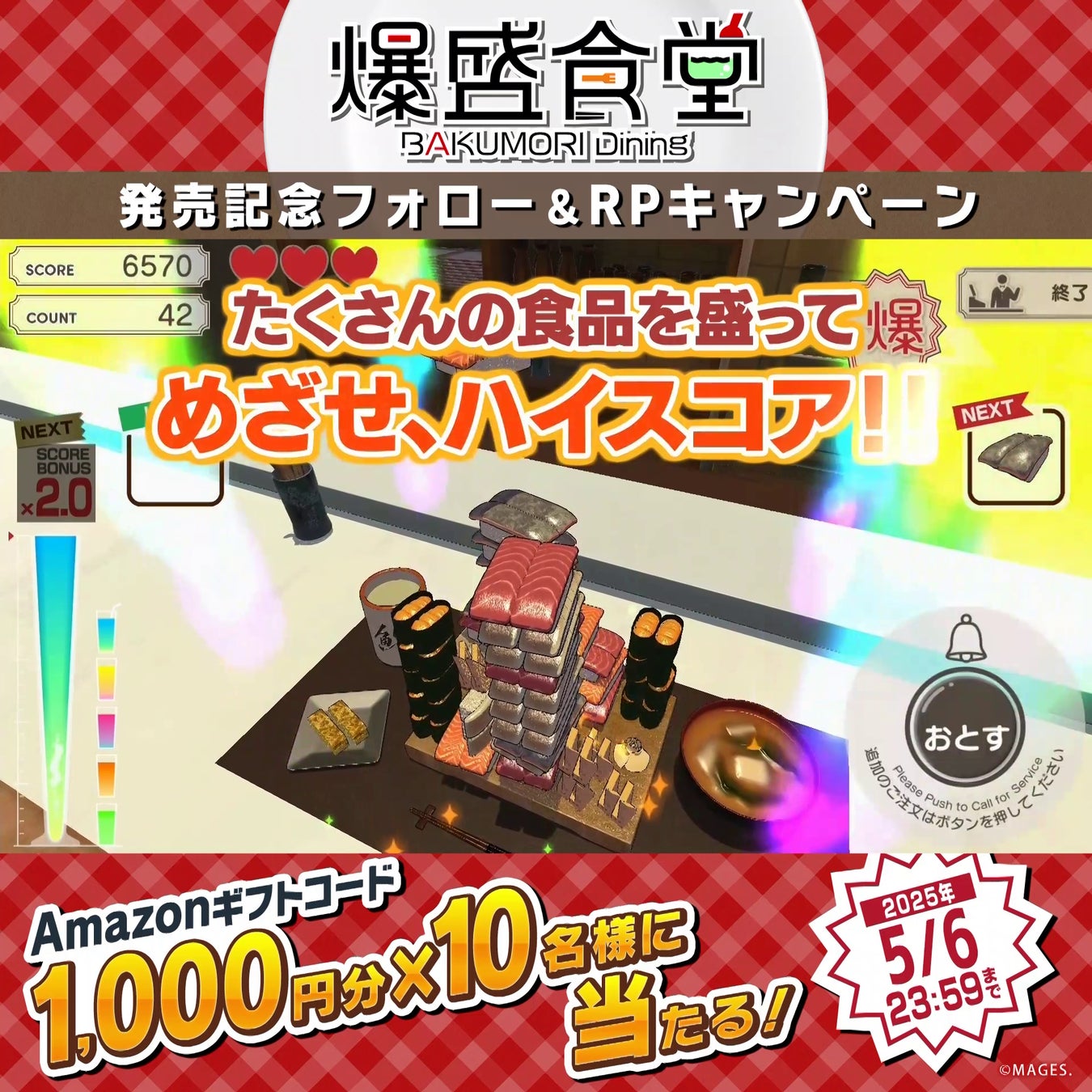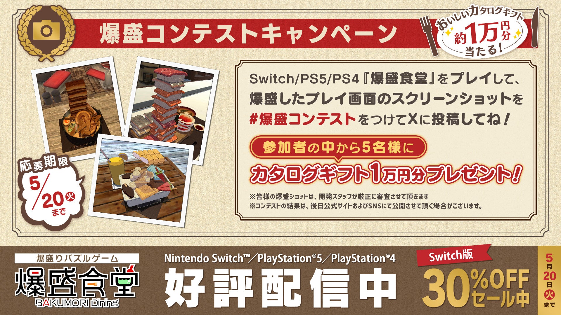 「爆盛食堂」をプレイして、爆盛なスクリーンショットをXに投稿してご参加ください!