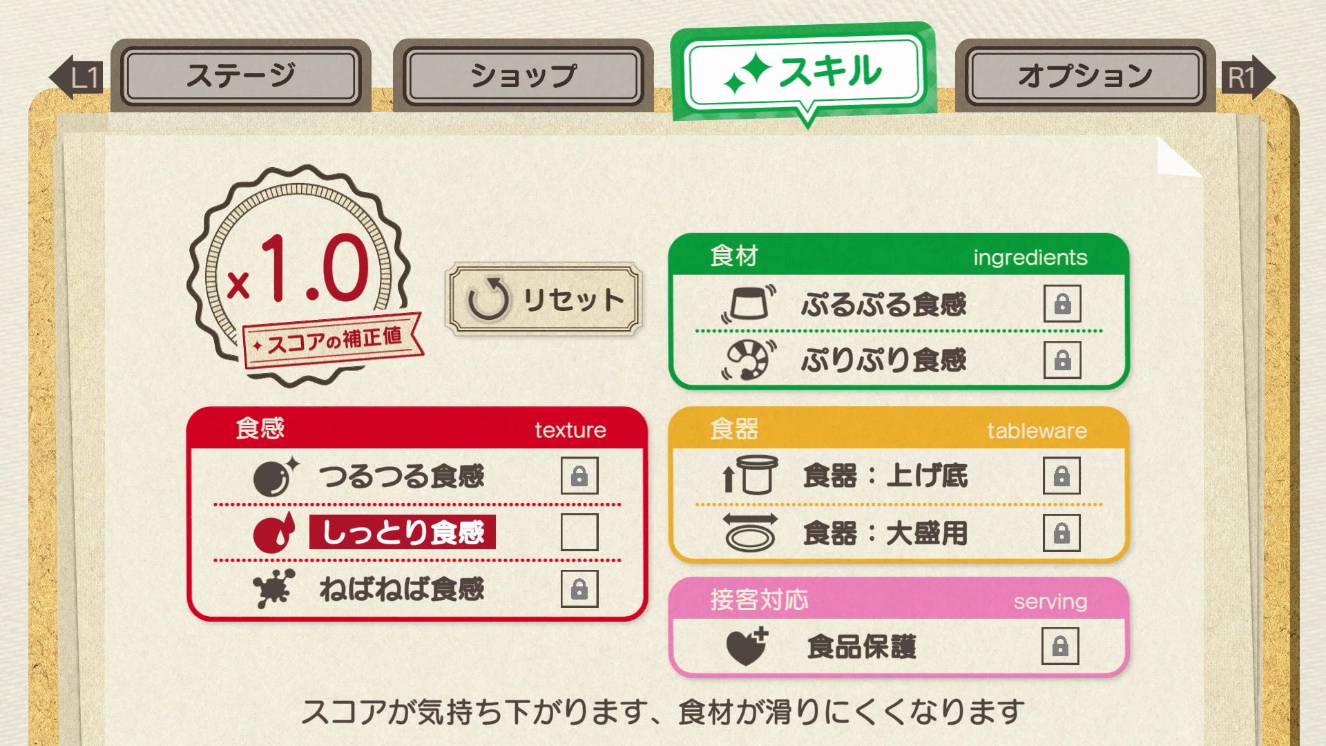 ステージは全7種類+おまけ3種類、盛れる食材は70種類以上でやりこみ要素も盛りだくさん。