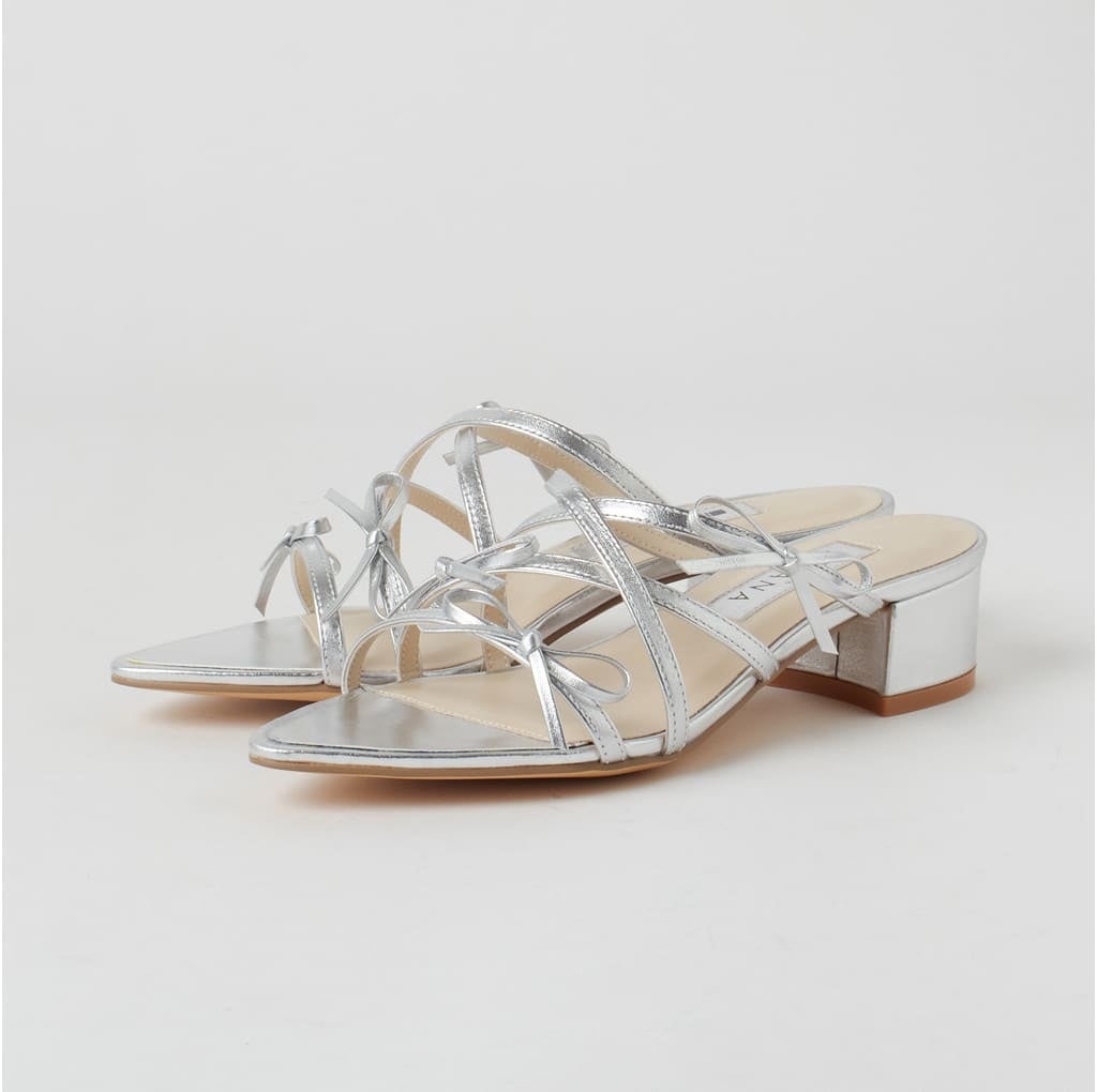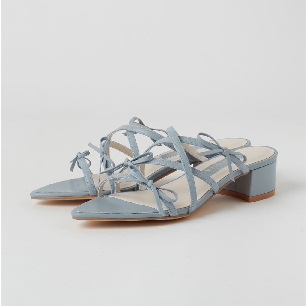フェミニンなプチリボンを咲かせたストリングミュールサンダルにWEB限定カラーが登場。今シーズン注目のバレエコア要素を足元にも取り入れられるアイテムです。限定カラーでは、コーディネートのアクセントになるライトオーキッドとミルキーブルーの2色をご用意いたしました。