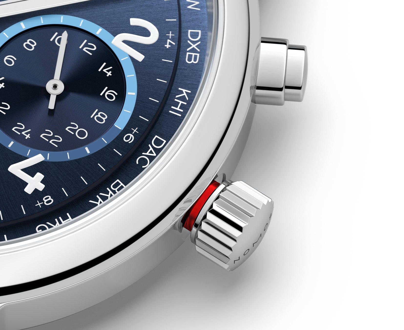 ノモス自社製自動巻きキャリバー、ワールドタイム、24 時間と昼夜の表示
