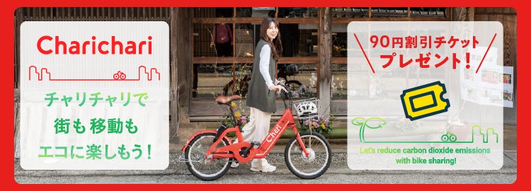 チャリチャリのご利用を通して、日常の移動における環境アクションをより身近なものとして感じていただき、また楽しみながら取り組んでいただきたいとの考えから、「SPOBY(スポビー)」の「福岡コミュニティ」にご参加の皆さまへ、ご褒美特典としてチャリチャリのライドチケットをプレゼント(※2)いたします。