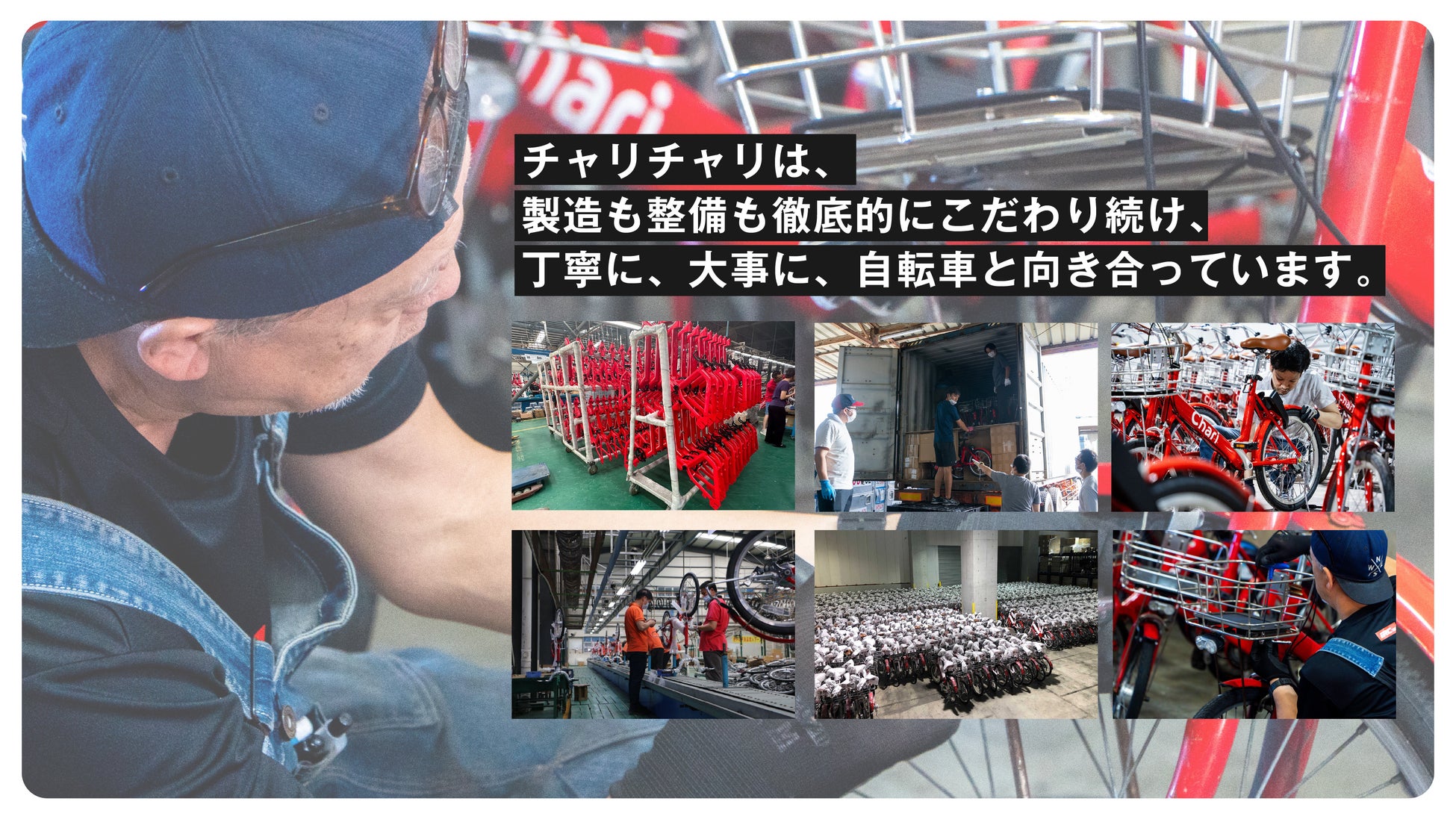 また、チャリチャリは「つくる責任、つかう責任」を強く意識し、自社グループで自転車・スマートロックの設計、製造、管理、運営の全てを行い、適正数量の製造などによる産業廃棄物削減や環境負荷の低い製造を実現するため、敢えて垂直統合の事業モデルにこだわり続けています。加えて、フレームやパーツの一つひとつまで安全性と耐久性にこだわり抜いて設計、製造し、ロングライフな自転車づくりに取り組むなど、環境に配慮した責任あるビジネスを推進しています。