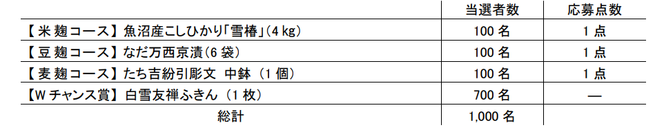 <魚沼産こしひかり「雪椿」など総計1,000名様に当たる>三種類の麹を元から仕込んだ“味の饗宴”「米 豆 麦 3種の麹 食卓の饗宴キャンペーン」