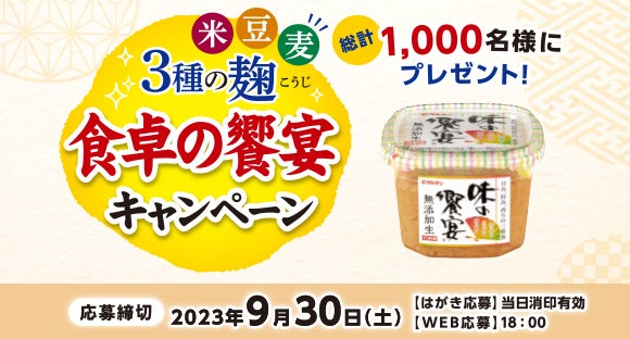 マルサンアイ株式会社(本社:愛知県岡崎市、代表取締役社長:堺 信好)は、「味の饗宴 無添加生 750g」を対象にした「米 豆 麦 3種の麹 食卓の饗宴キャンペーン」を2023年3月30日(木)より実施いたします。