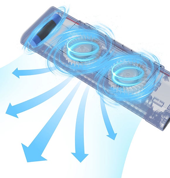 Fannilの全長は266mmで、送風口の長さは205mmにもなります!そのため、隅々まで風を送ることができわずか数秒で涼しくなります。