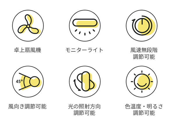 その場合、スタンド式として利用できます。スタンド式の卓上扇風機とデスクライトに早変わりします。