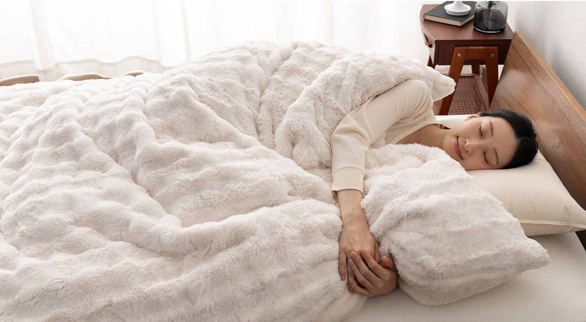 「身体に合った寝る・座る・たたむ」を提供する健康家具ブランドEMOORを展開する株式会社エムール(東京都立川市:代表取締役 高橋 幸司/以下エムール)は、2025年10月21日より、『ウルトラ極暖 カバーにもなる毛布〈ふわふわタイプ〉』の販売を開始しました。『ウルトラ極暖 カバーにもなる毛布〈ふわふわタイプ〉』は、両面に吸湿発熱素材「エムールヒートプラス」と高熱伝導「グラフェン」シートを備えた6層構造で、素早く暖めつつ熱を逃さず長く持続。ふわふわのラビットファータッチと、毛布にもカバーにも使える2WAY設計が、寝室もリビングも優雅に彩ります。