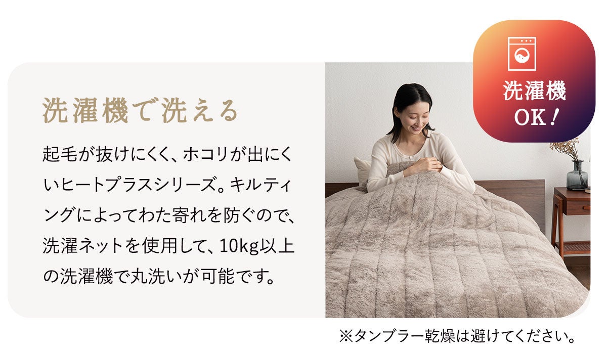 10㎏以上の洗濯機で丸洗い可能(※洗濯ネット使用推奨) |