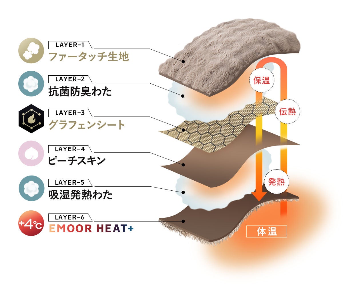 寒がりの方、節電派は必見!冬の定番“EMOOR HEAT+”シリーズから「ウルトラ極暖!カバーにもなる毛布に〈ふわふわタイプ〉」が新登場!6層構造+W発熱素材で、一晩中ぬくもりが続く高機能毛布が誕生!