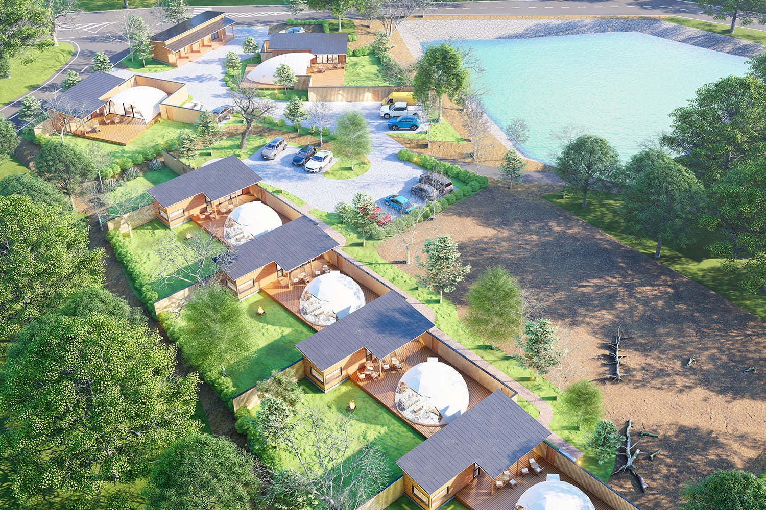 このレイクリゾートに全棟に専用の温泉風呂を設けた「リトリートグランピング千葉亀山」がオープン。