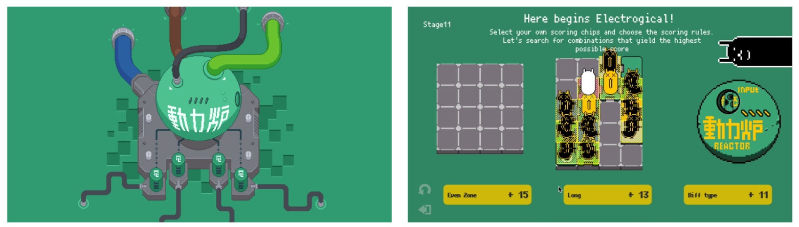 電力を数値で合わせる事を目指して、数字のパネルを繋ぐシステムの「四則演算通電パズル」で、パズルゲームが好きな人から、初めての方まで幅広く遊べる「生活の一部になるゲーム」をコンセプトとしています。