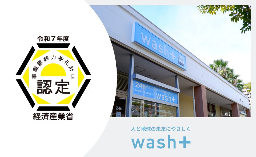 “洗剤を使わない”ランドリー展開のwash-plusが中小企業庁「事業継続力強化計画」に認定