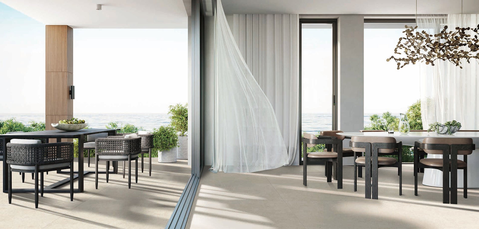 当社は、かねてより、壁装材・床材・ファブリックといった屋内に使用する商品を中心に、空間ソリューションを通じたより高い価値の創造を目指してきました。このたび、空間デザインを内から外へ広げるプロダクト拡充の一環として、屋外に使用できるセラミックタイルおよびエクステリア商品を新たにラインアップしました。当社は、暮らしのデザインをさらに自由に広げるため、2つの新カタログでインテリアとエクステリア一体型のトータルデザインを提案します。