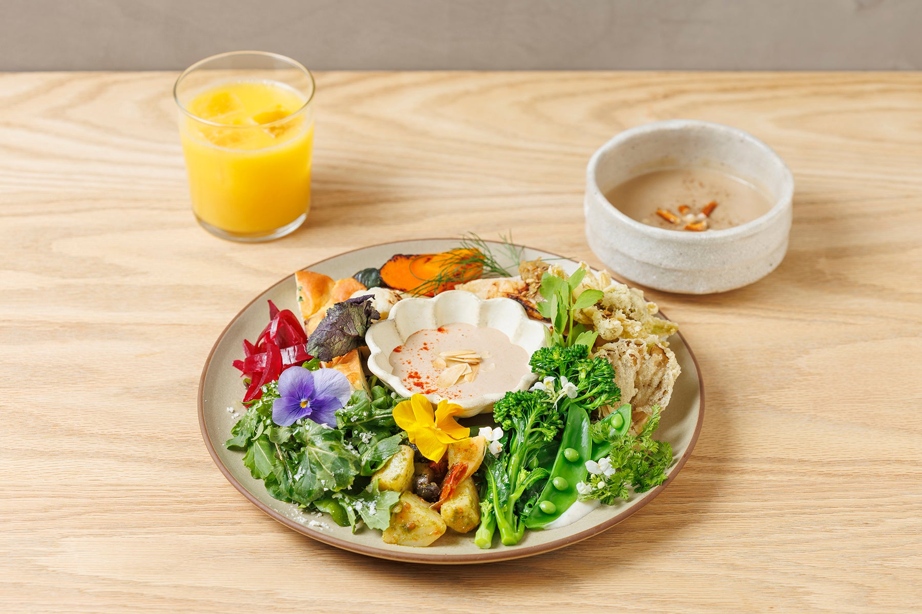 カフェ・レストラン「Hyssop」のランチメニューとして提供している「Herbal Lunch Plate」に使用している野菜を「風緑農園」のもので提供(一部異なる場合もあり)。その時期に取れる野菜を、素材を活かした調理法で提供します。