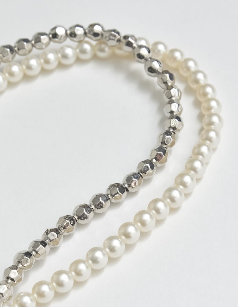 きらりと輝くシルバーと、華やかさのあるフェイクパールの展開。