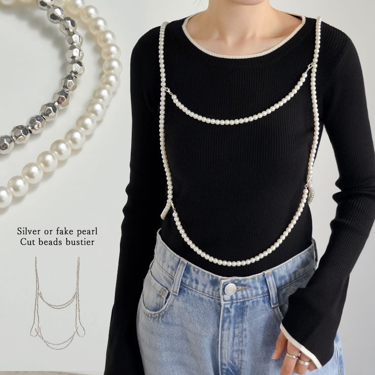 シルバーorフェイクパールカットビーズビスチェ