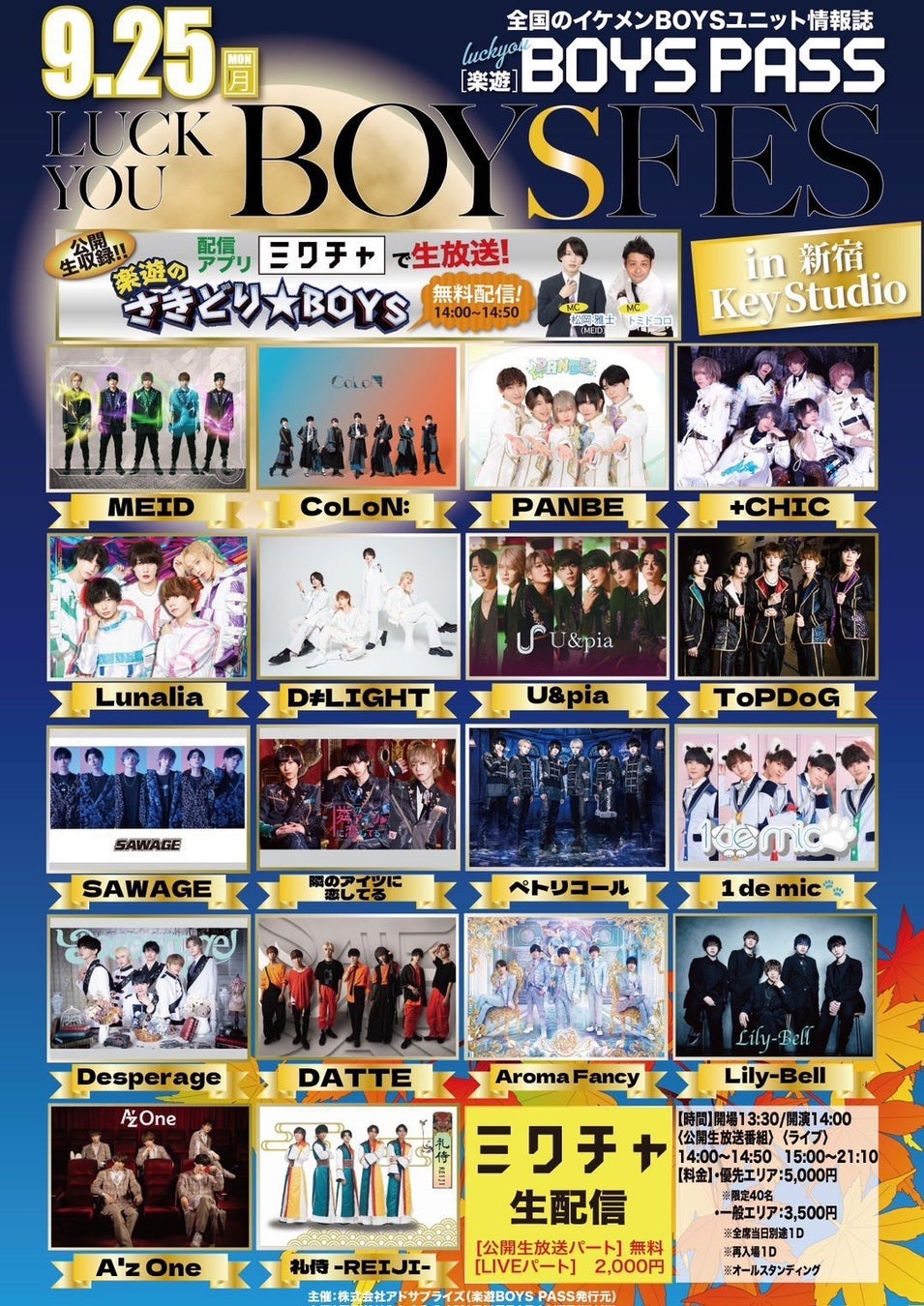 全国のBOYSユニットを数多く掲載する人気情報誌「楽遊BOYS PASS」。本誌が毎月主催として開催するイベント『楽遊BOYSフェス』の9月公演が9/25(月)東京・新宿Key Studioにて開催。