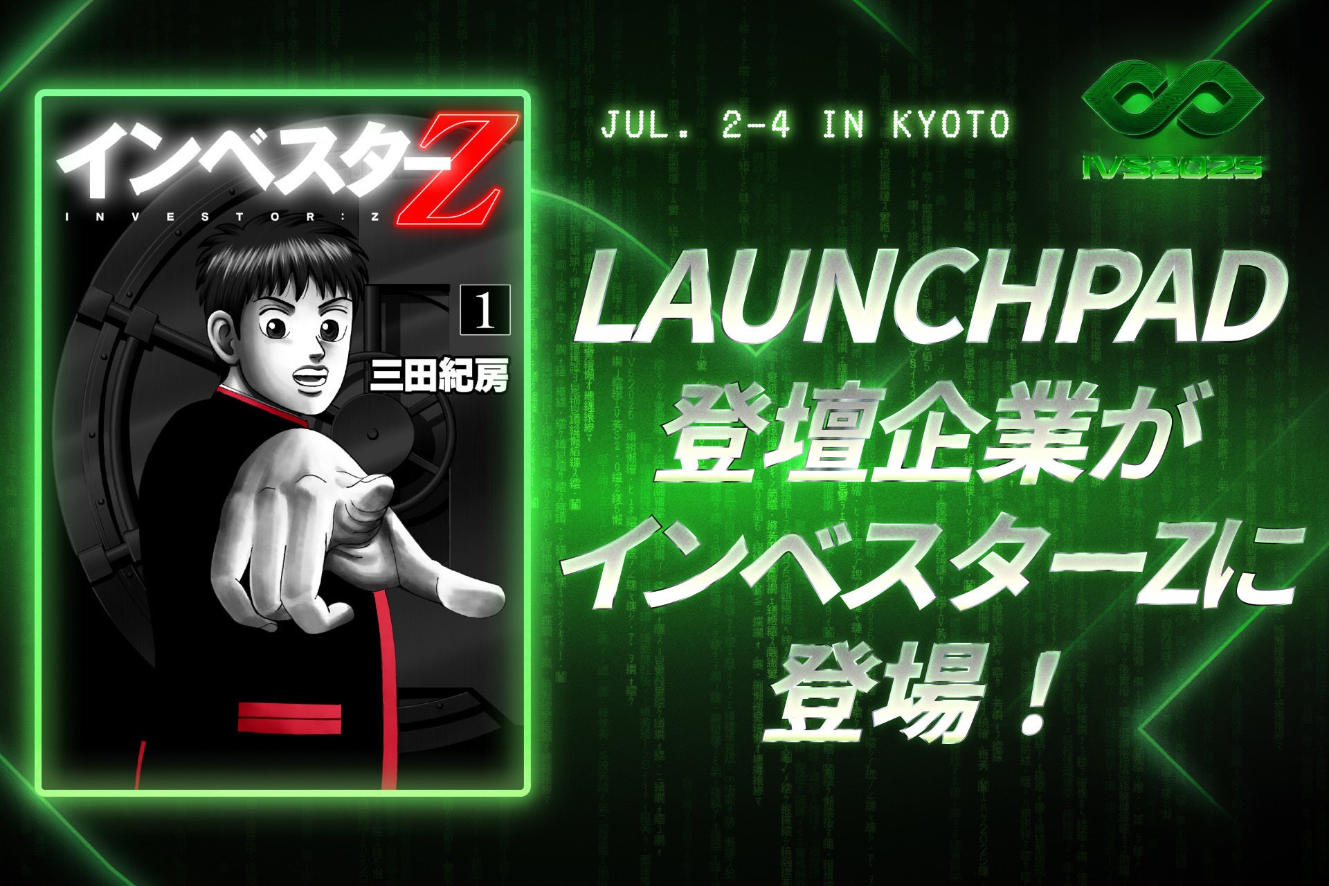 国内最大規模のスタートアップカンファレンス「IVS」は、2025年7月2日(水)〜 4日(金)の3日間、みやこめっせをメイン会場として「IVS2025」を開催します。本イベントのメインコンテンツの1つであるピッチイベント「IVS2025 LAUNCHPAD」で、特別賞として三田紀房先生のマンガ『インベスターZ』で、特別賞を受賞した企業の事業や登壇者が作中に登場するスピンオフマンガを特別に描き下ろししていただけることが決定したことをお知らせいたします。