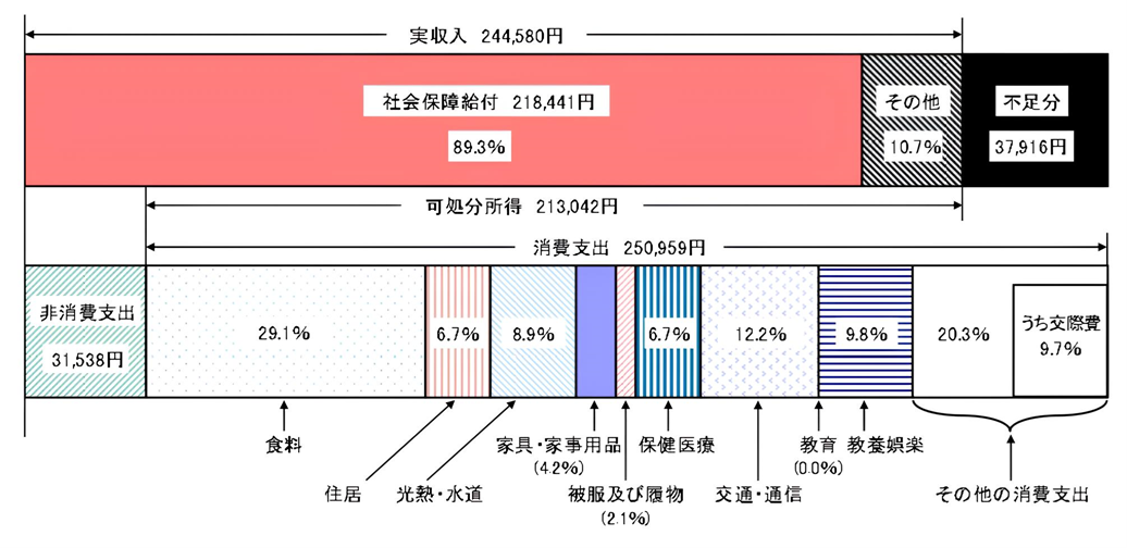 65歳以上の夫婦のみの無職世帯(夫婦高齢者無職世帯)の家計収支 ―2023年―より