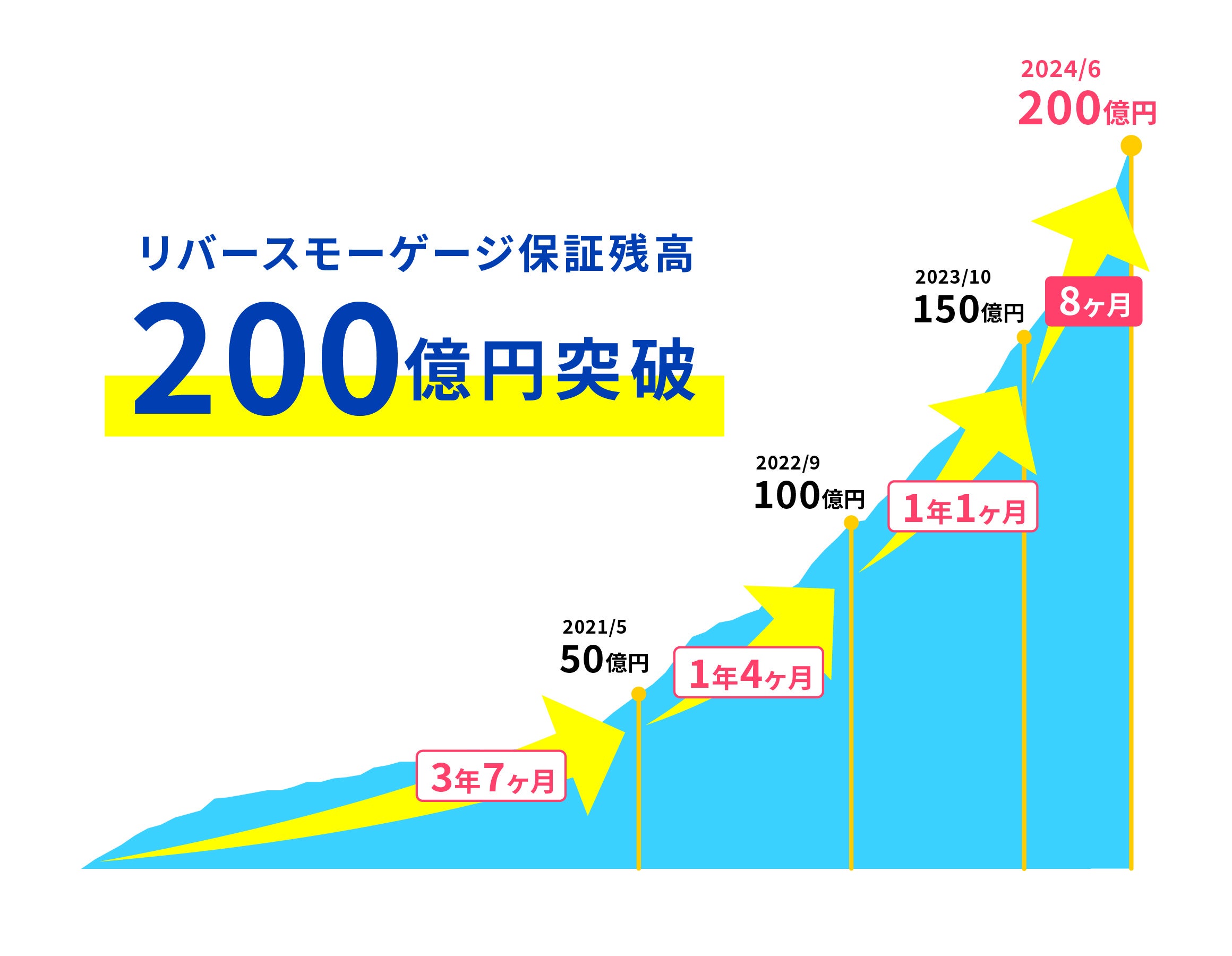 フィナンシャルドゥはリバースモーゲージにおける担保評価および債務保証業務を2017年10月から本格的に開始し、2024年6月末で保証残高が208億41百万円となりました。また、2023年10月末に保証残高150億円を達成してから、8ヶ月で50億円増加と過去最速のペースで保証残高が増加しております。