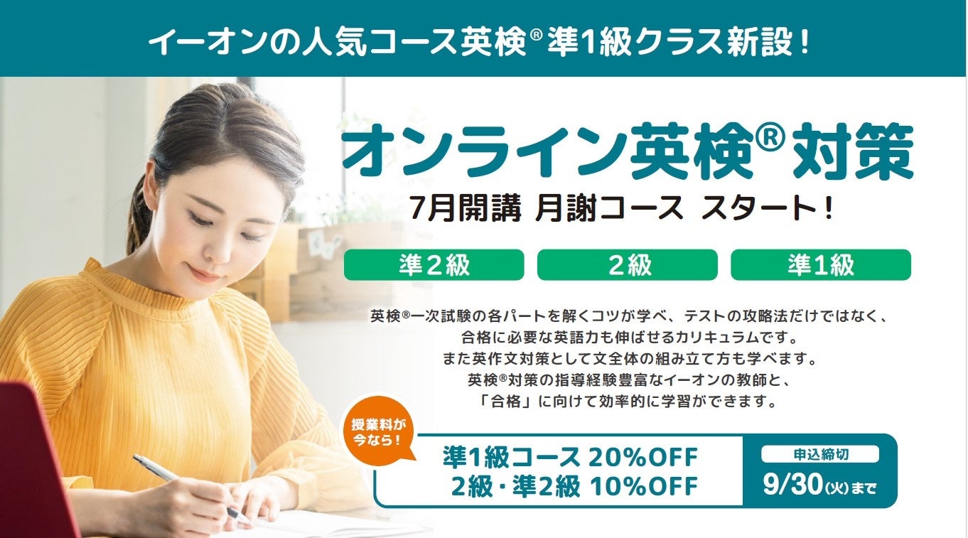 株式会社イーオン、「オンライン英検(R)対策 準1級クラス」を7月7日より開講!