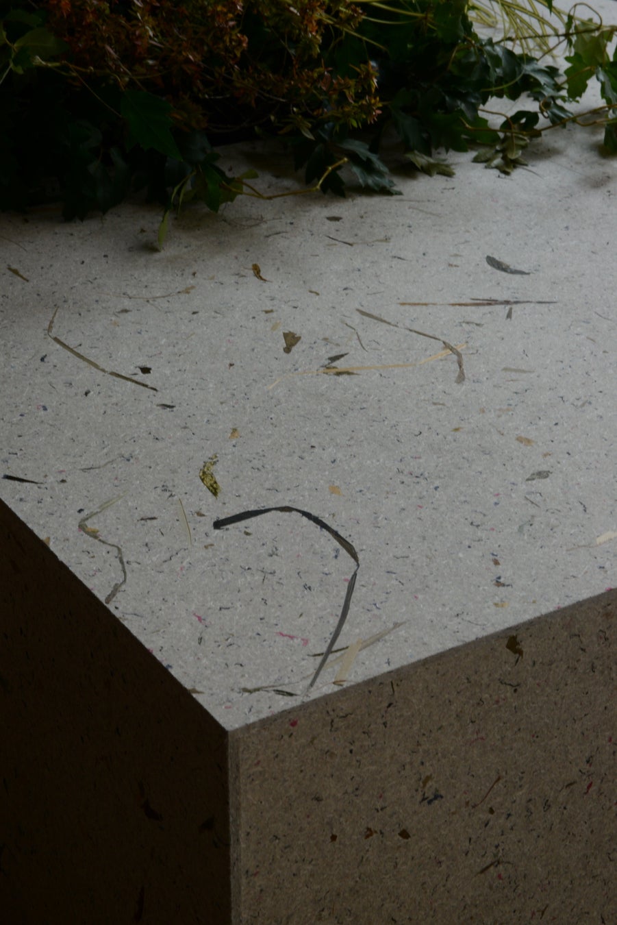 加工性に優れており空間の内装、ディスプレイ什器、家具など、多種多様な目的に使用することができ、使用後も再びボードとして再資源することが可能な革新的なマテリアルです。