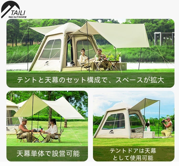 キャンプの準備で、テントの組み立てに時間を費やしたり、手間をかけたりすることはもう過去のものです。TAILIエアーテントが、あなたのキャンプ体験を一変させます。