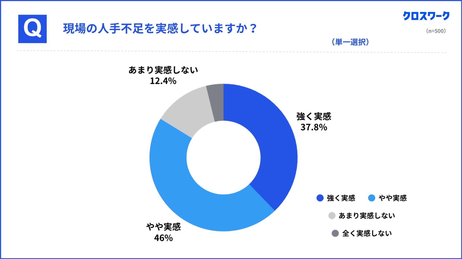 8割強が人手不足を実感、大工・左官・土木作業員が足りない。外国人と働く機会56%が増加