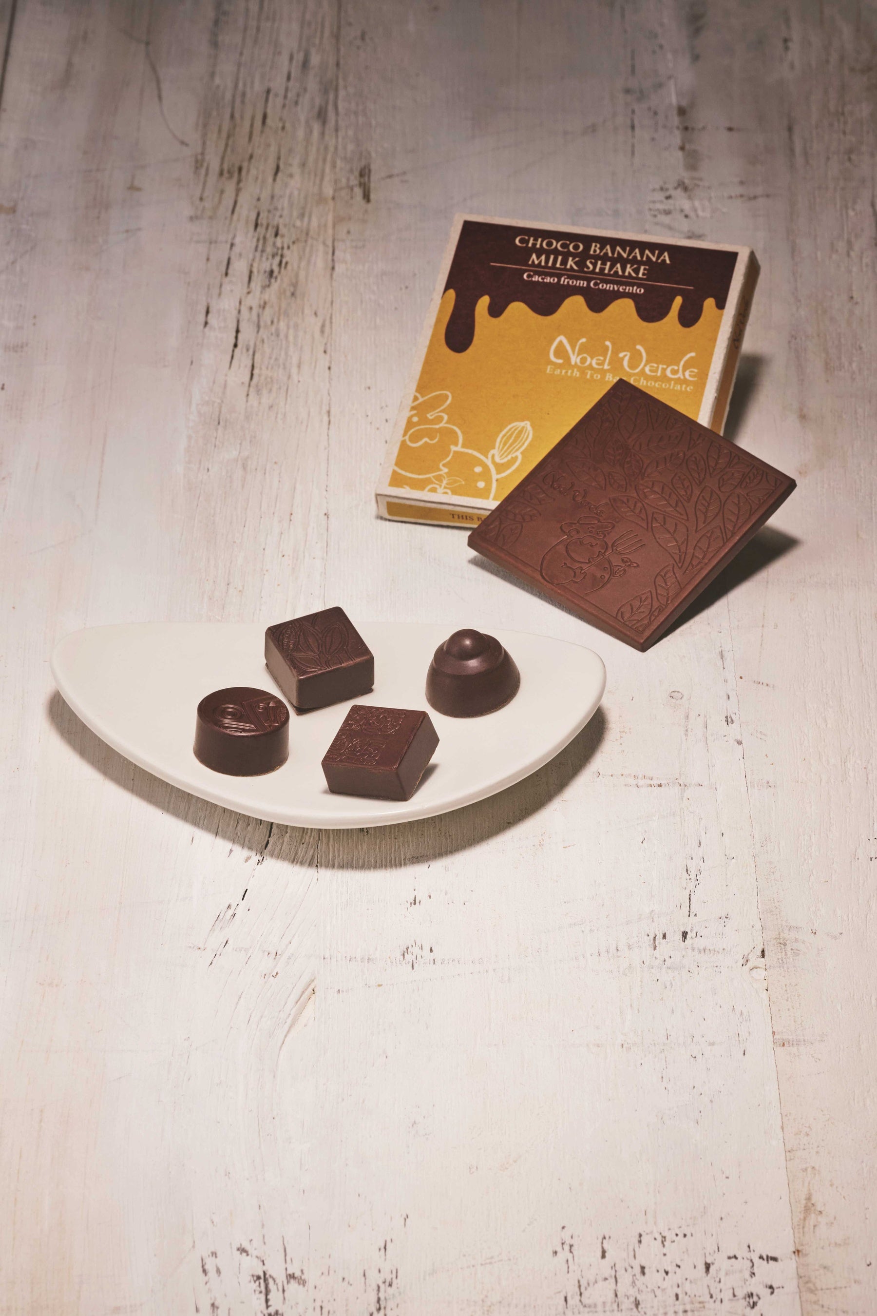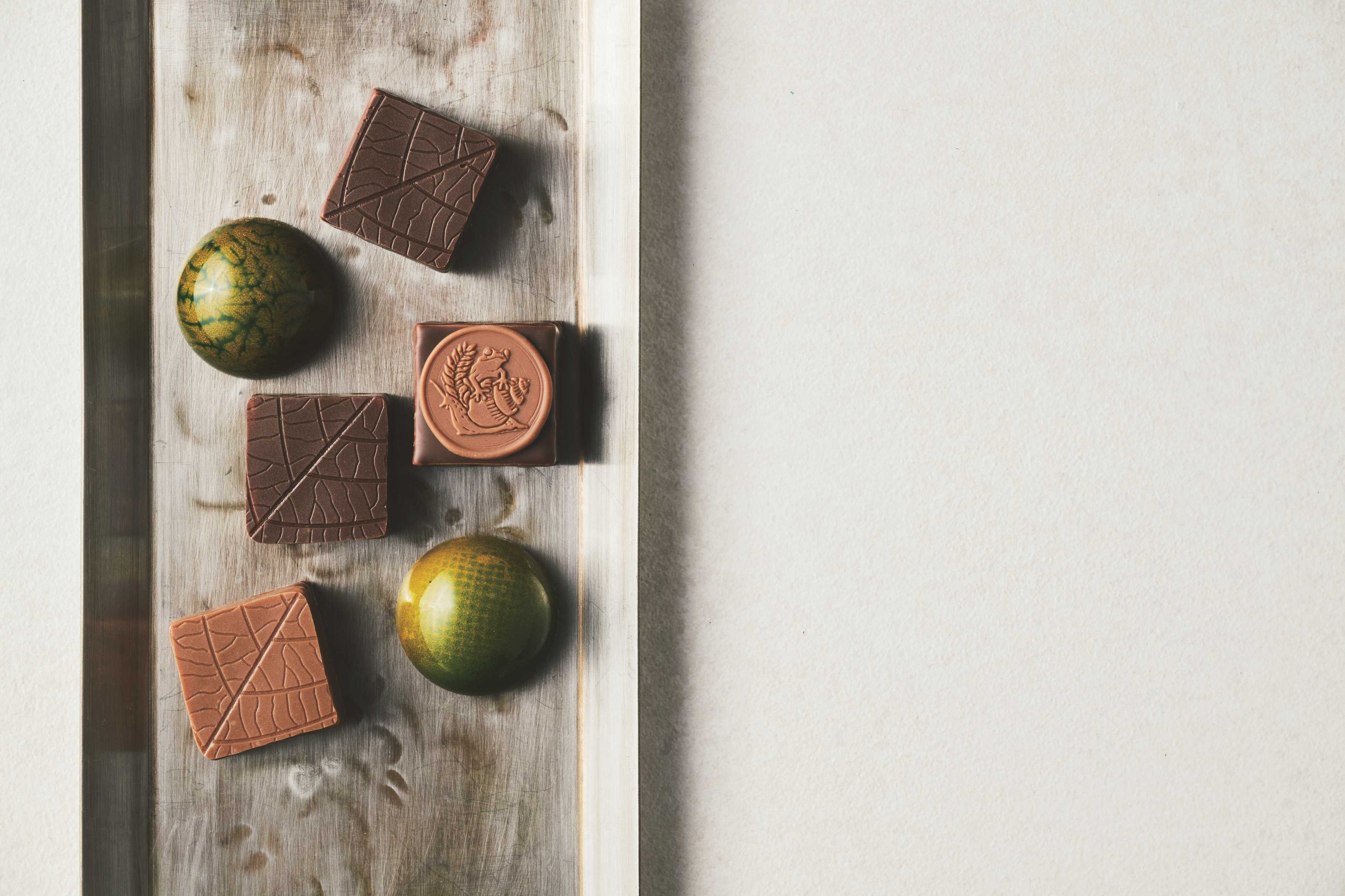 エクアドル産のアリバ種カカオにアンデス産のミルク、田辺農園の自然循環型農法によるバナナをたっぷり使用したタブレットと、赤道直下のエクアドルで採れたフルーツやマカンボ、海塩を使用し、エクアドルの農産物へのオマージュを表現したボンボンアソート。