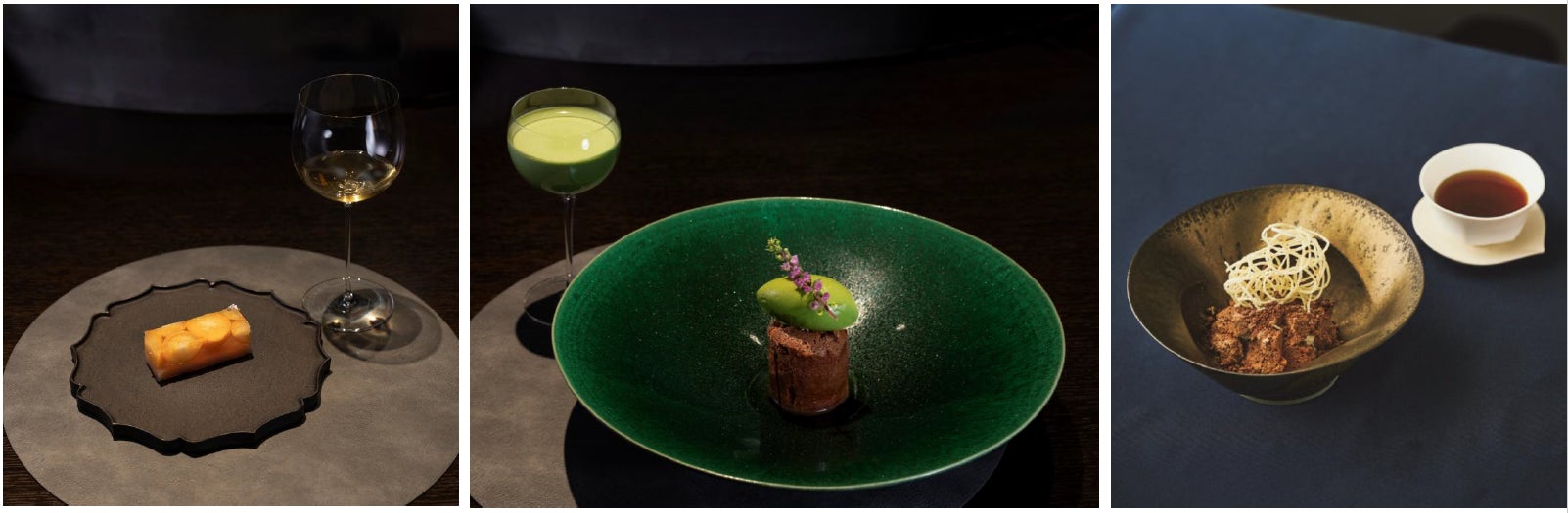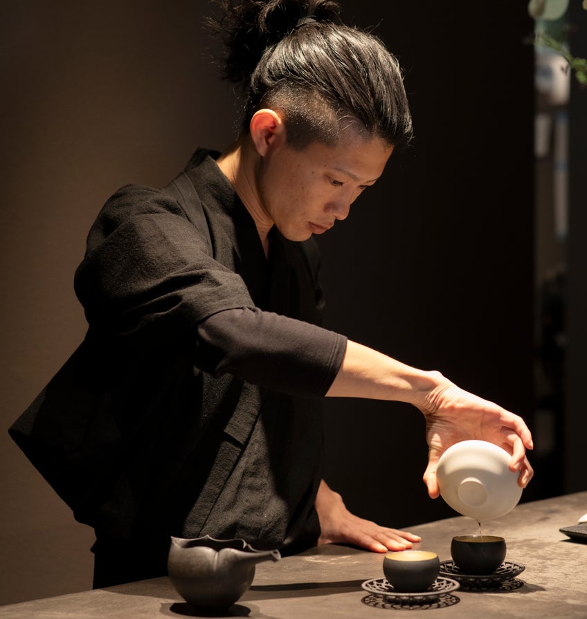 東京・神楽坂の、日本茶を織り交ぜたデザートコースの専門店。オーナーシェフ田中俊大氏が、カカオを主軸に 「日本茶の可能性」を表現した特別なショコラコースをお届けします。独創的なセンスで食材を操る田中氏の、一期一会の味わいをぜひ。