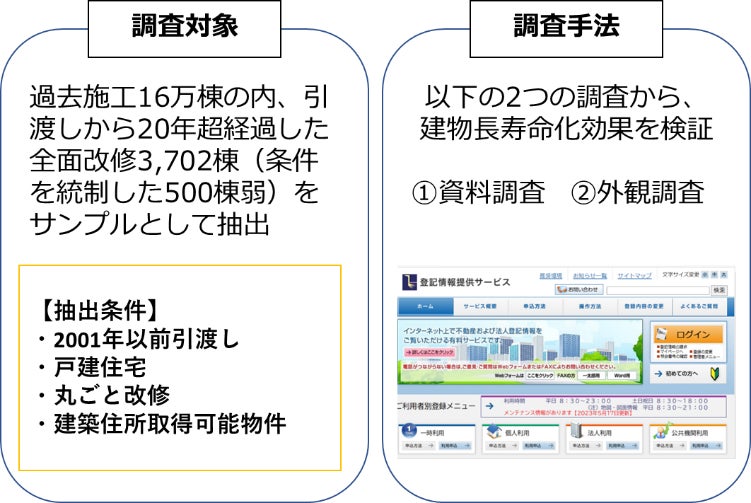 1996年から27年間で16万棟を施工してきた「新築そっくりさん」の過去施工物件をトレースすることで改修された住宅の長寿命化効果を確認