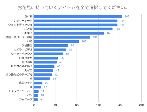 お花見に持っていく「アイテム」の中で最も欠かせないものは?