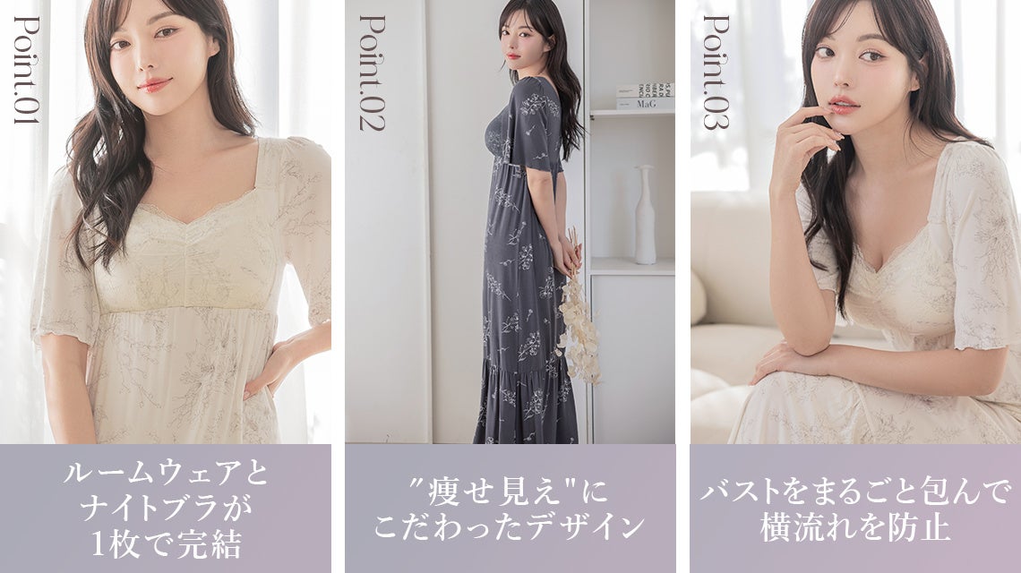 【ポイント①】ルームウェアとナイトブラが1枚で完結