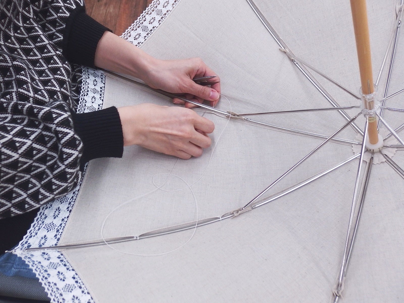 製造元は1936年大阪創業の柴田株式会社。当社は「素晴らしい伝統技術は受け継がれていくべき」という考えのもと、傘業界でも数少ない若手職人を抱える柴田株式会社に製造を依頼しました。