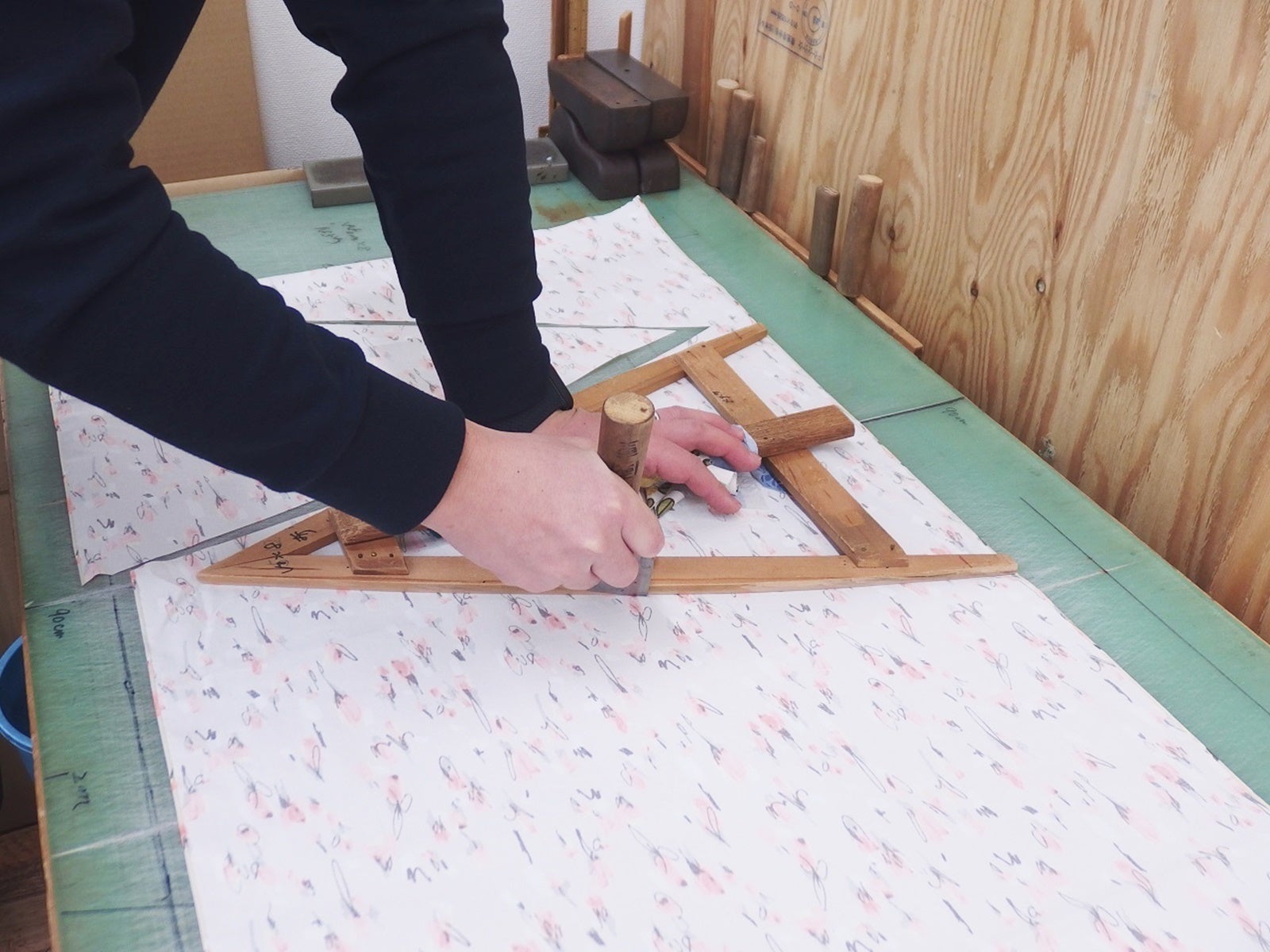 露先(親骨の先端と生地が縫い付けられている部分)の固定や生地の内側と親骨1本1本を縫合する「中綴じ」もすべて手縫いで丁寧に仕上げています。手間・時間はかかる作業ですが細かな部分や見た目の美しさ、技術の高さが職人技ならではの魅力です。