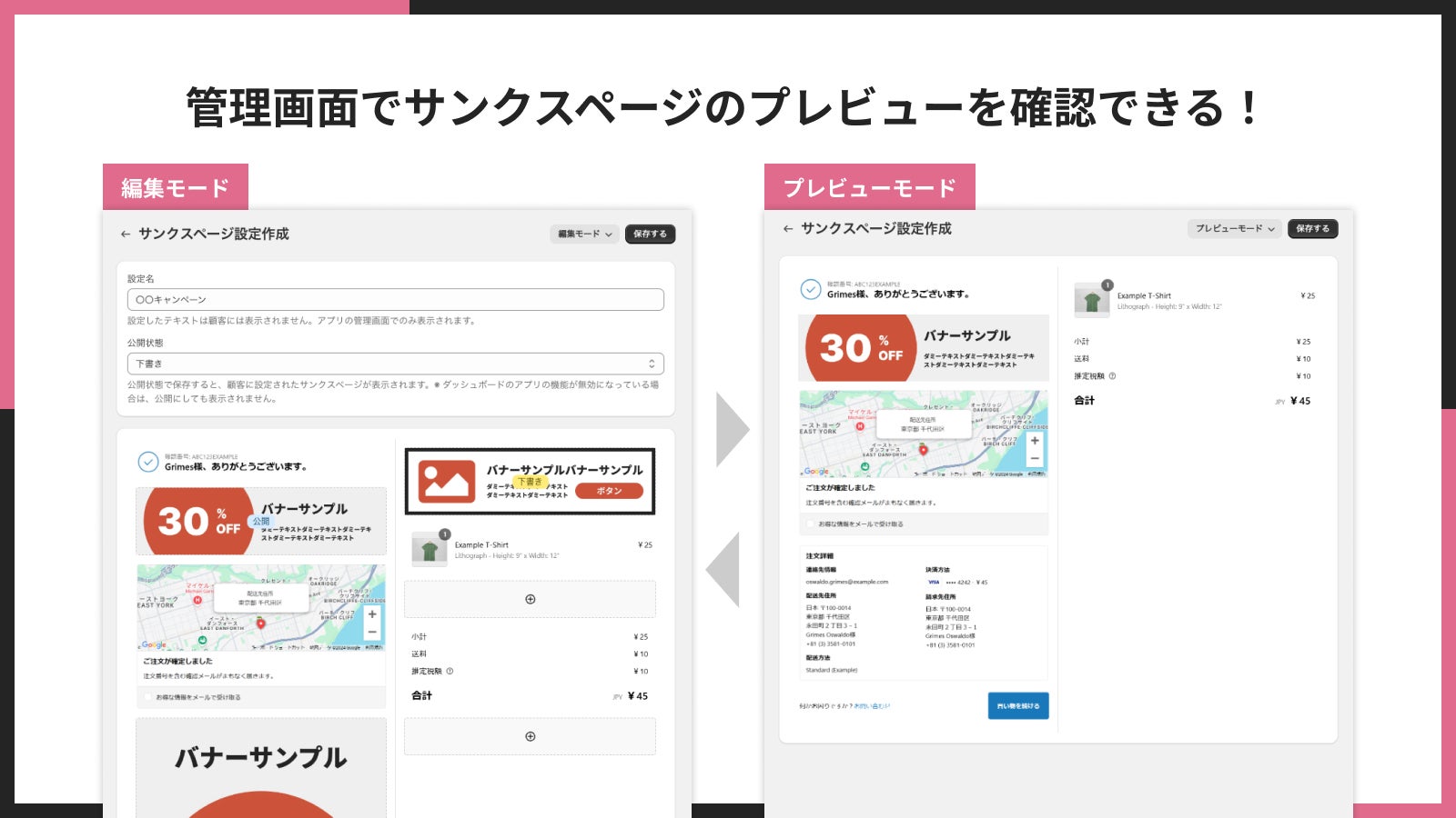 「シンプルサンクスページ編集|お手軽チェックアウト拡張」では、管理画面でサンクスページのプレビューを確認することができます。設定した画像がどのように表示されるのかを簡単に確認できます。