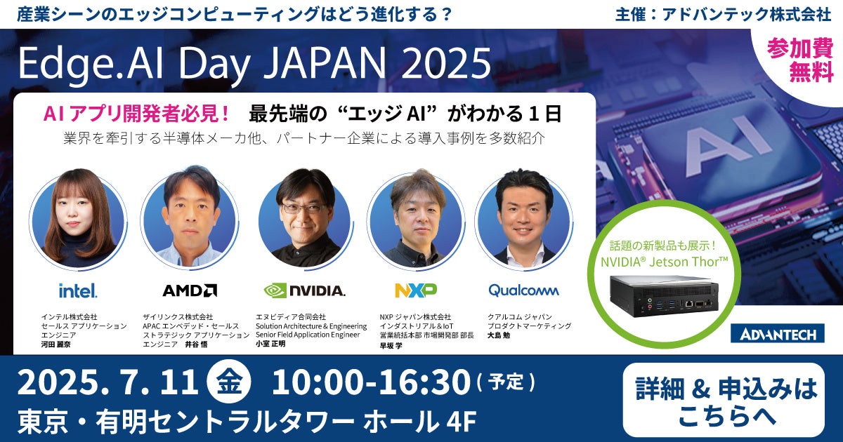アドバンテック株式会社は、2025年7月11日(金) 東京・有明にてイベント 「Edge.AI Day Japan」を開催します。
