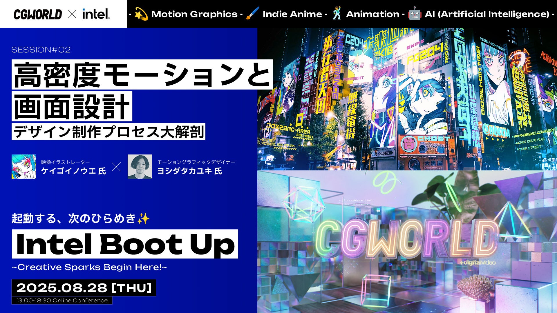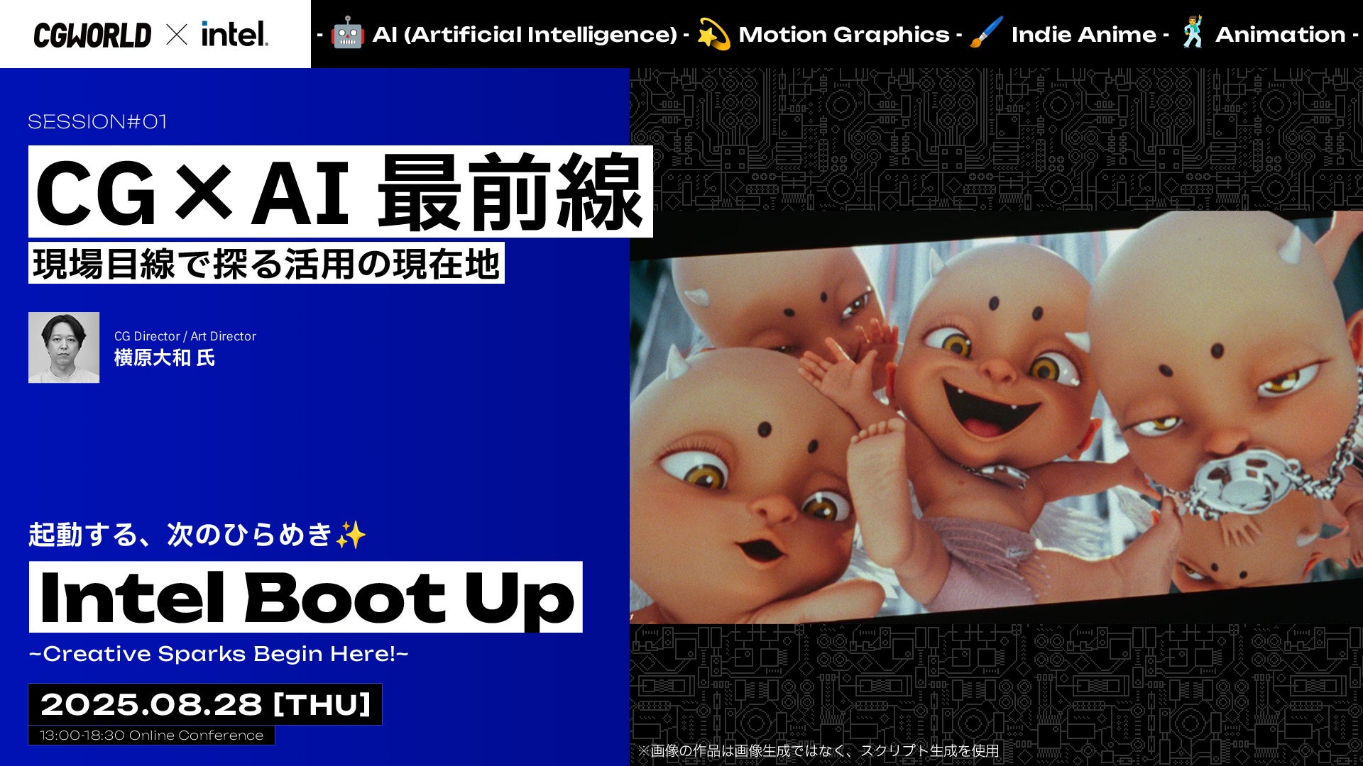 株式会社ボーンデジタル(本社:東京都千代田区、CEO:新 和也、URL:https://www.borndigital.co.jp)が運営する、CG・映像制作の専門メディア「CGWORLD」は、インテル株式会社の協賛のもと、2025年8月28日(木)にオンラインイベント「Intel Boot Up -Creative Sparks Begin Here!-」を開催いたします。
