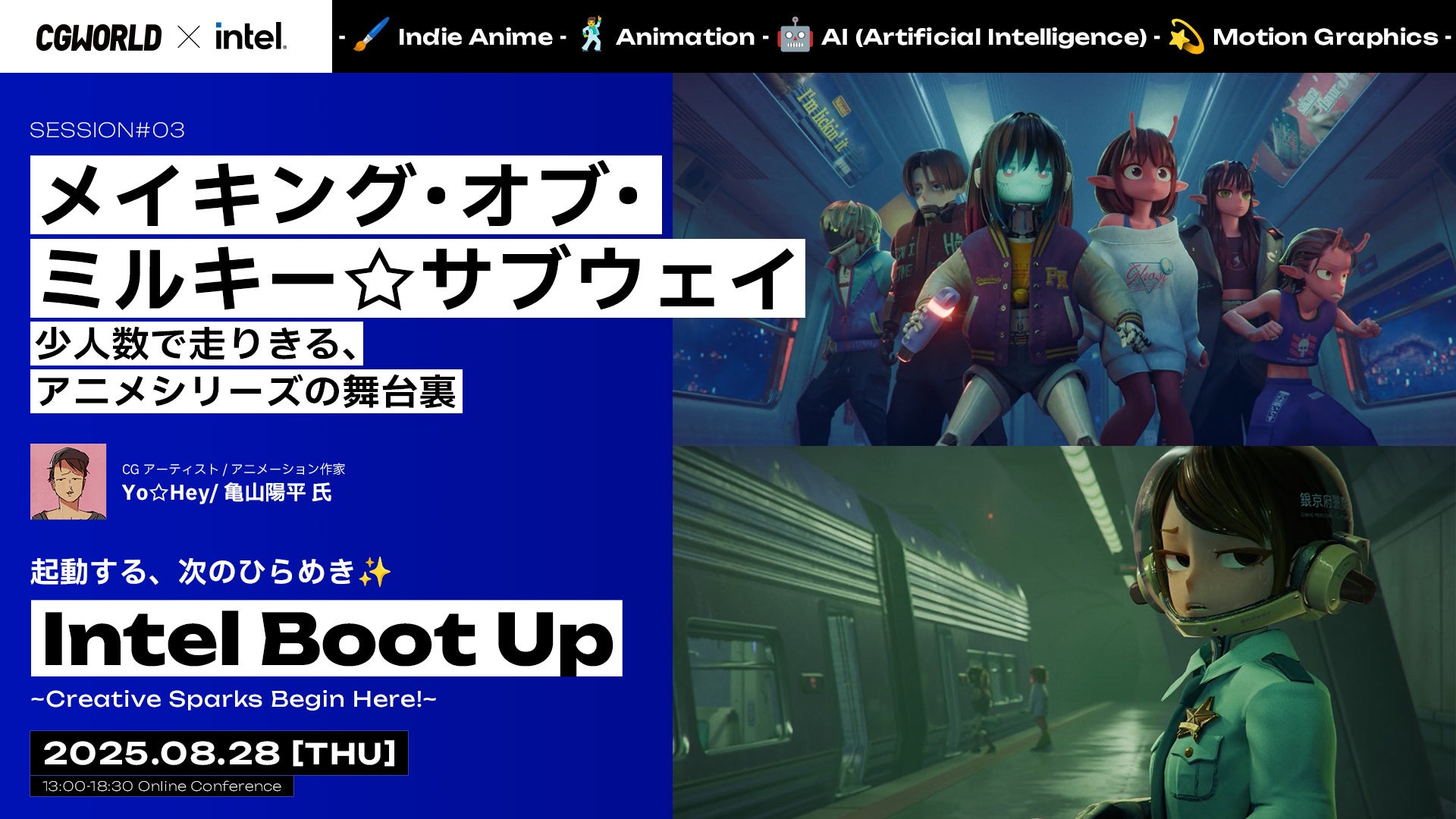 「Intel Boot Up 」8/28(木)開催決定。『銀河特急 ミルキー☆サブウェイ』監督亀山陽平氏、Khaki横原氏など、異業種のクリエイターが集い、制作ノウハウを紹介