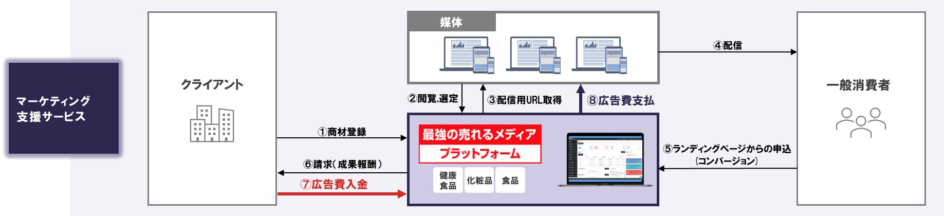 いまや本プラットフォームは、広告主にとっては“売上爆増装置”、媒体社にとっては“収益エンジン”、マーケティング業界のゲームチェンジャーとして、“圧倒的な収益装置”へと進化を遂げています。