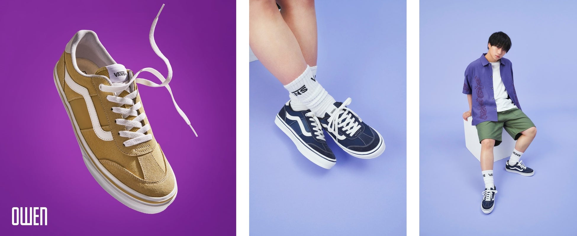 90’sスケートシューズライクなストリートシルエットと、異素材の生地の重なりで表現されたVANSのアイコンであるサイドストライプが特徴の新たなシルエットです。