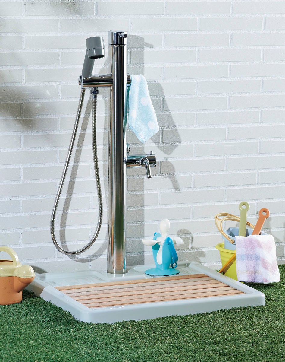 散歩後の行動を考慮した動線を確保したプランに加え、外付け水栓で