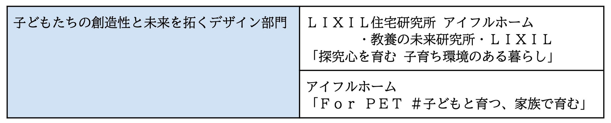 アイフルホームの「探究心を育む 子育ち環境のある暮らし」「For PET #子どもと育つ、家族で育む」の2作品で受賞