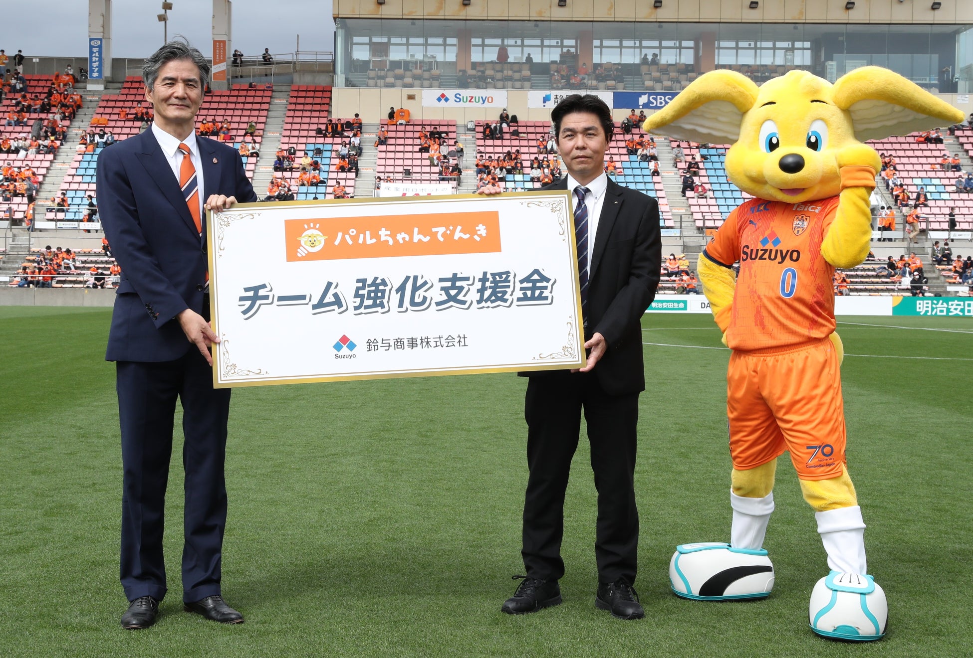 鈴与商事株式会社(本社:静岡市、代表取締役社長:伊藤 正彦、以下、鈴与商事)は、2023年3月12日(日)に開催されましたJリーグ公式戦(清水エスパルスvs大分トリニータ:IAIスタジアム日本平)の試合開始前に、「パルちゃんでんき」のチーム強化支援金贈呈式を執り行いましたことをお知らせ致します。